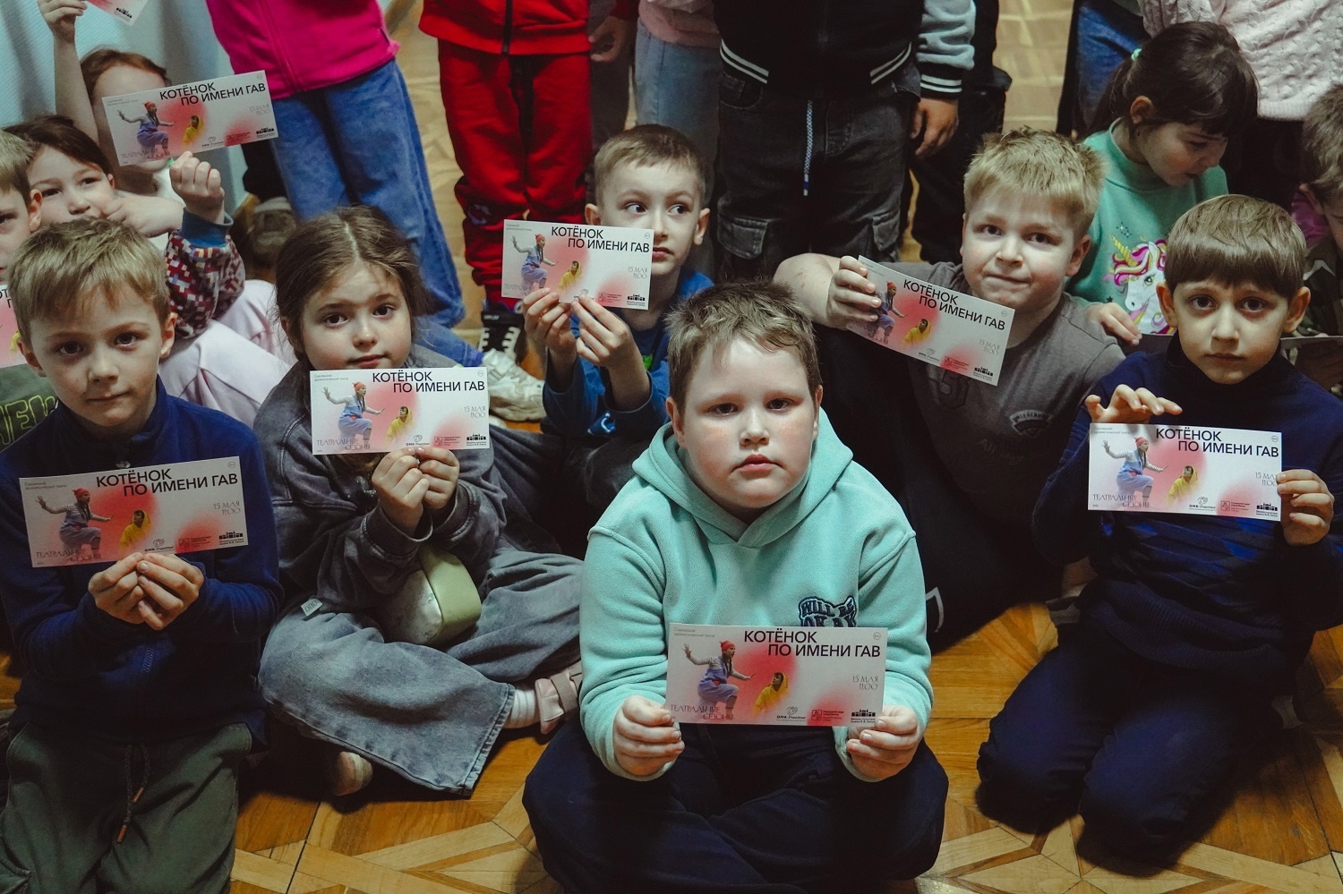 Прекрасно приняли выксунские ребята нашу сказку "Котенок по имени Гав" - смеялись, хлопали, имя Шарику подсказывали! Появление сосиски просто произвело фурор